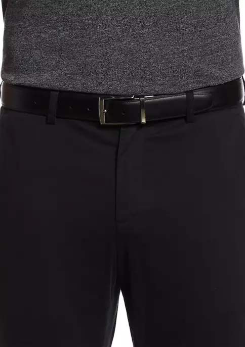 This slick leather belt from Perry Ellis® reverses from brown to black.