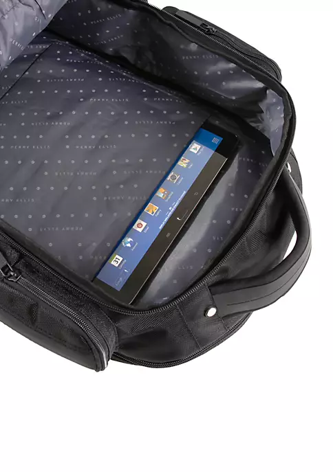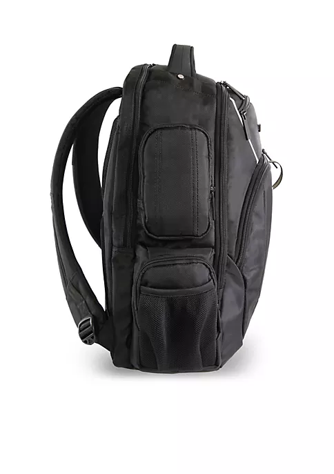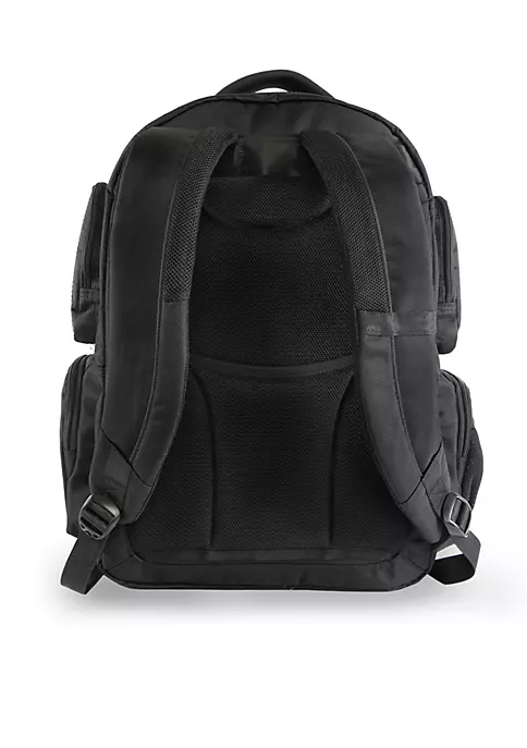A backpack for the business executive traveler who needs to carry all their files, paperwork, laptop, and tablet. With a total of eight zippered pockets, you’ll have enough room to take everything you need. This backpack features both padded laptop and tablet sleeves, sleeves and dividers to keep organized, and a trolley handle pass-through strap.
