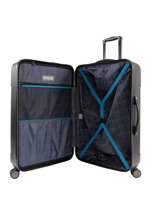 Zip through the terminal and to your destination with this hard side, spinner luggage from Perry Ellis. With small and large interior compartments and a shoe compartment, you can keep your items neat and organized. Keep your clothing secure with the adjustable buckle tie down. Travel is made easy with an 8-wheel spinner system and top and side handles.
