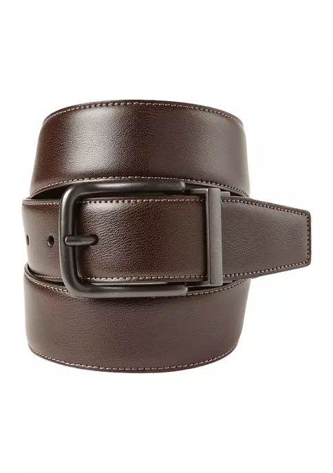 Reversing from a lighter brown to a darker brown, this Perry Ellis® belt is crafted out of posh leather.