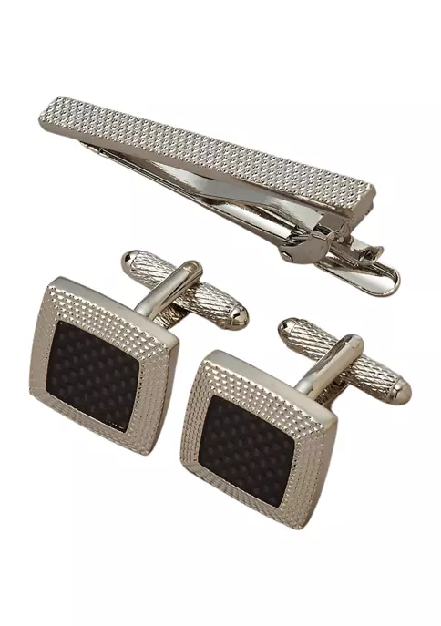 - Includes tie bar and cuff links