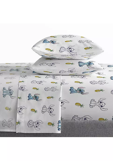 Drift off to a tropical dreamland paradise with your favorite alien under our exclusive Disney Lilo and Stitch bed set! Our duvet cover has a hidden button closure to keep your duvet in place. The Saturday Park color palette is consistent across the entire line, making each piece truly mix and match.200 thread count 100% GOTS certified organic cotton and OEKO-TEX certified, tested for over 300 harmful chemicals and synthetics.Our bed sets are composed of durable long-staple cotton with a crisp percale weave that gradually softens over time and are machine washable for easy care.Set includes one duvet cover, one sham, one pillowcase, one fitted, and one flat sheet with twin set, and two shams, and two pillowcases with a full/queen set. (Duvet insert not included)Your Saturday Park purchase helps support The Pajama Program, a charity that gives new pajamas and books to vulnerable children and shares its resources with caregivers to support comforting bedtime routines so that all children can thrive.