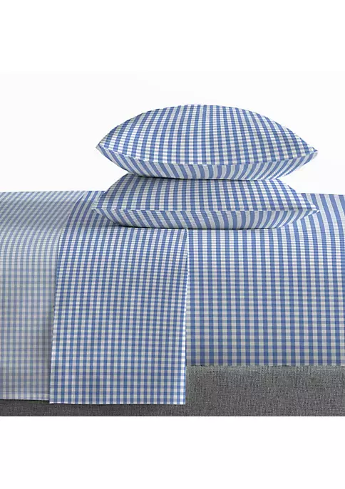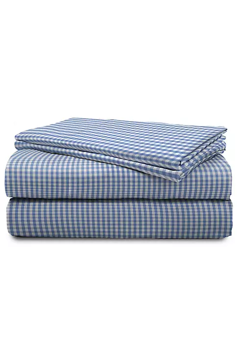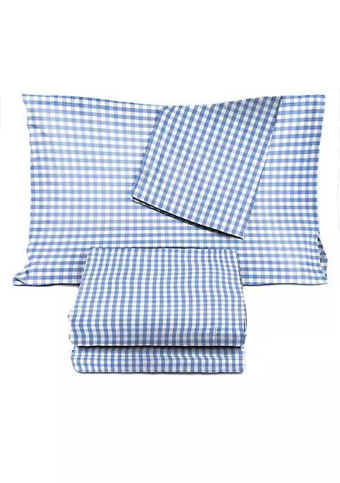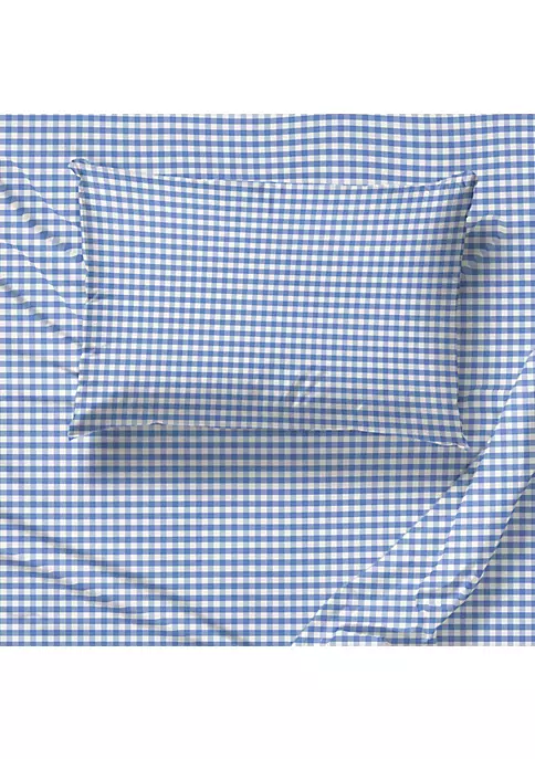 Enjoy the timeless, classic gingham pattern with our printed sheet set! Fitted sheet has a full elastic hem for a secure, snug fit as well as top/bottom/side directional labels for a perfect fit on the first try. The Saturday Park color palette is consistent across the entire line, making each piece truly mix and match.200 thread count 100% GOTS certified organic cotton and OEKO-TEX certified, tested for over 300 harmful chemicals and synthetics.Our sheet sets are composed of durable long-staple cotton with a crisp percale weave that gradually softens over time and are machine washable for easy care.Set includes one fitted sheet, one flat sheet and one standard pillowcase with a twin set—or two standard pillowcases with a full/queen set.Your Saturday Park purchase helps support The Pajama Program, a charity that gives new pajamas and books to vulnerable children and shares its resources with caregivers to support comforting bedtime routines so that all children can thrive.